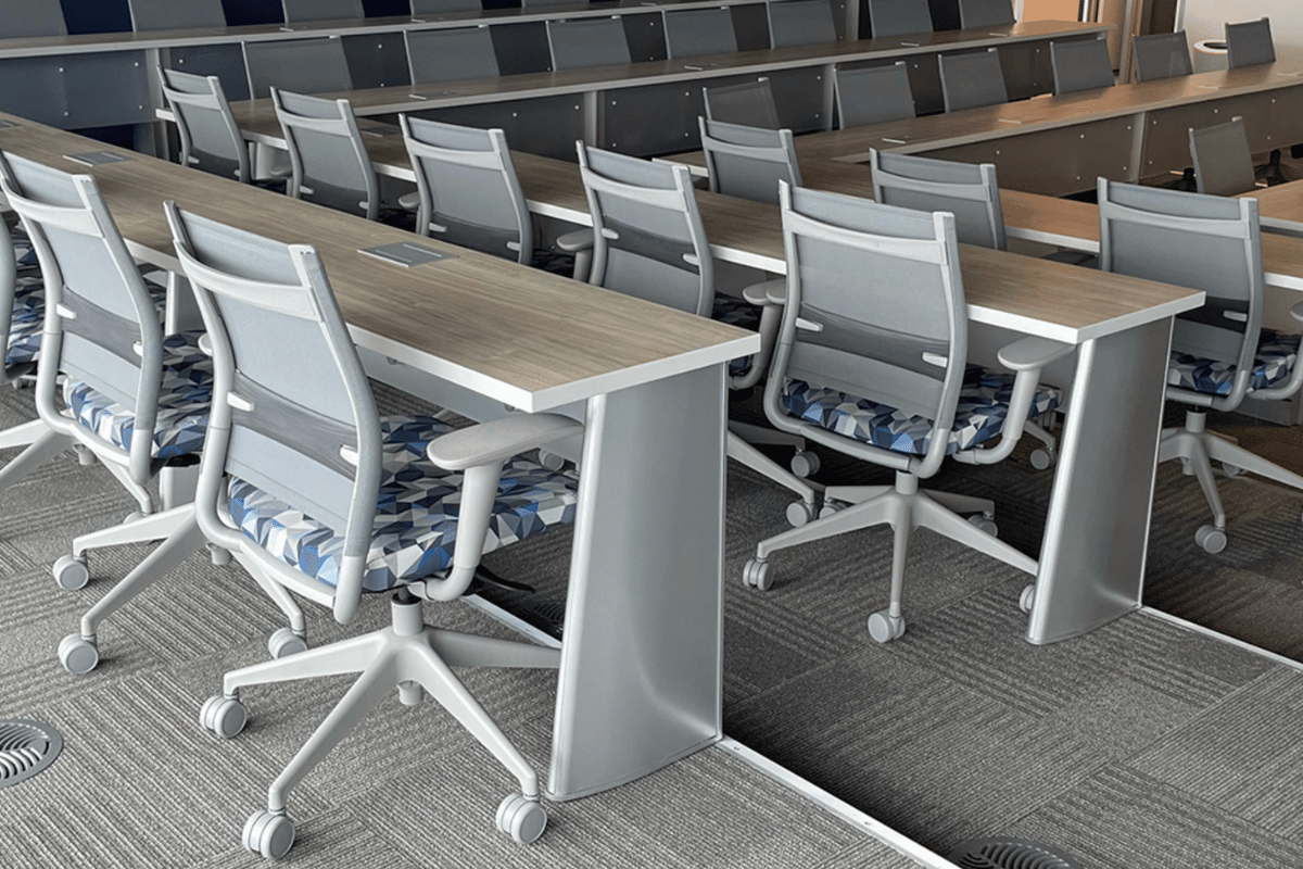 Fixed tables with swing away chairs, Jury Base chairs, Beam Seating, Freestanding tables – Sedia has it all.