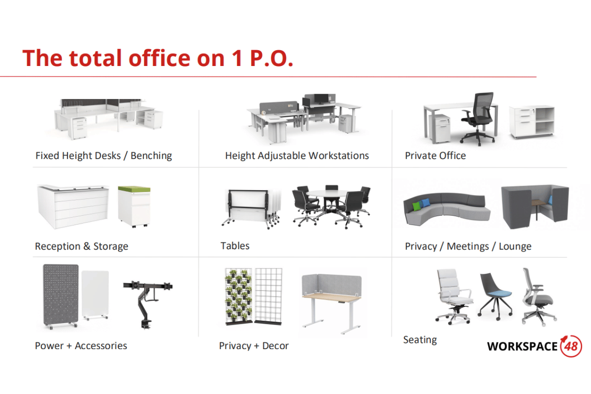Workspace48 is the ONLY company in the industry where you can provide high quality, high design, affordable products, and EVERYTHING ships in 48 hours with almost or NO punch list!