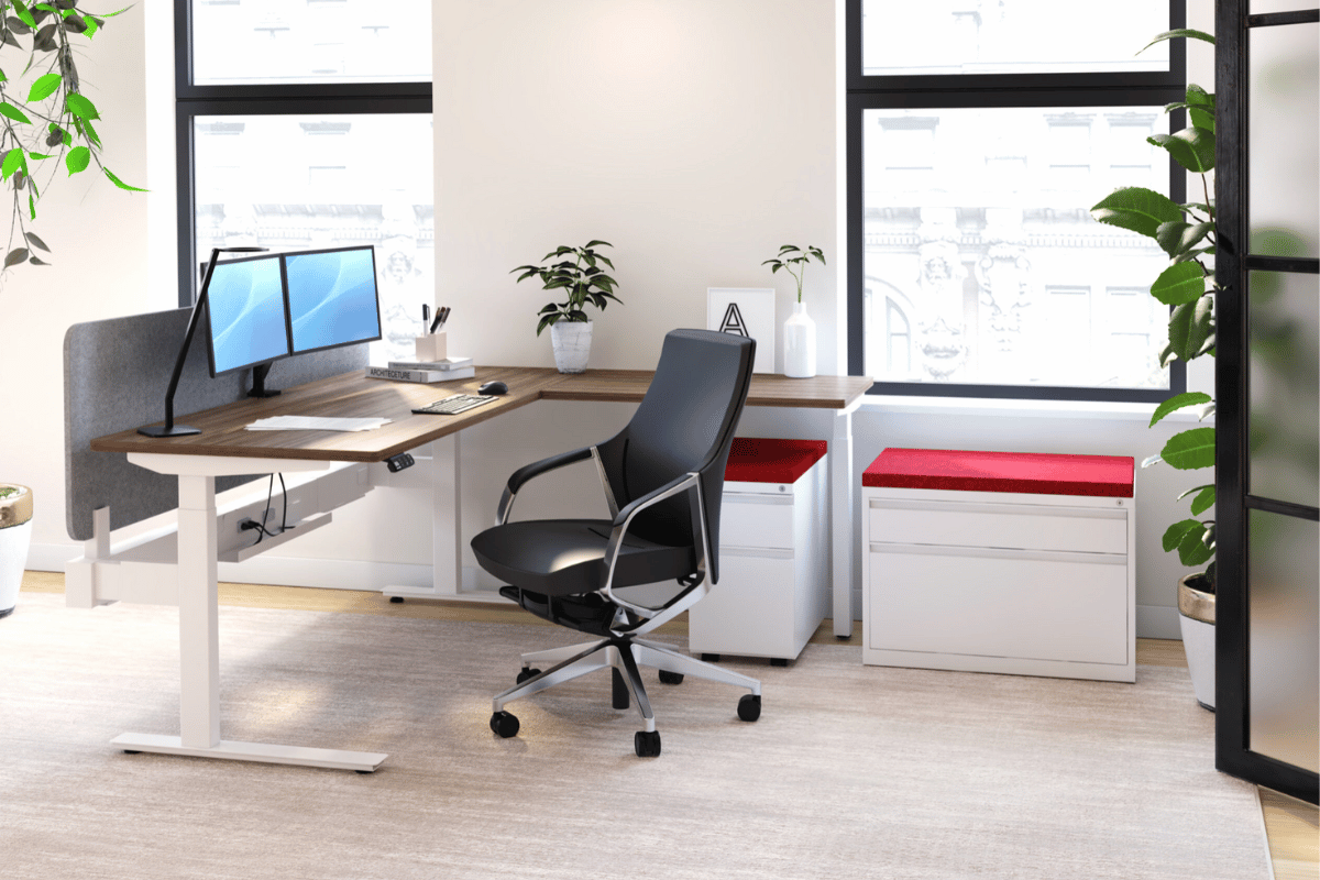 Kinetic is a height-adjustable desk with 2-stage or 3-stage legs, which offers a versatile height range to accommodate all users.